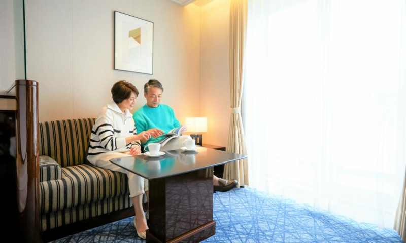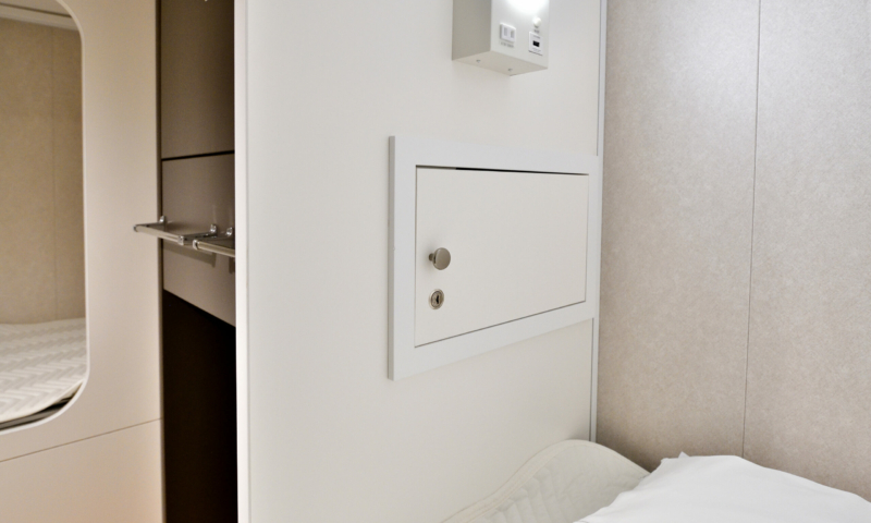 - Bath, toilet, wash basin, locker, TV, table, sofa, private terrace, outlet, USB outlet