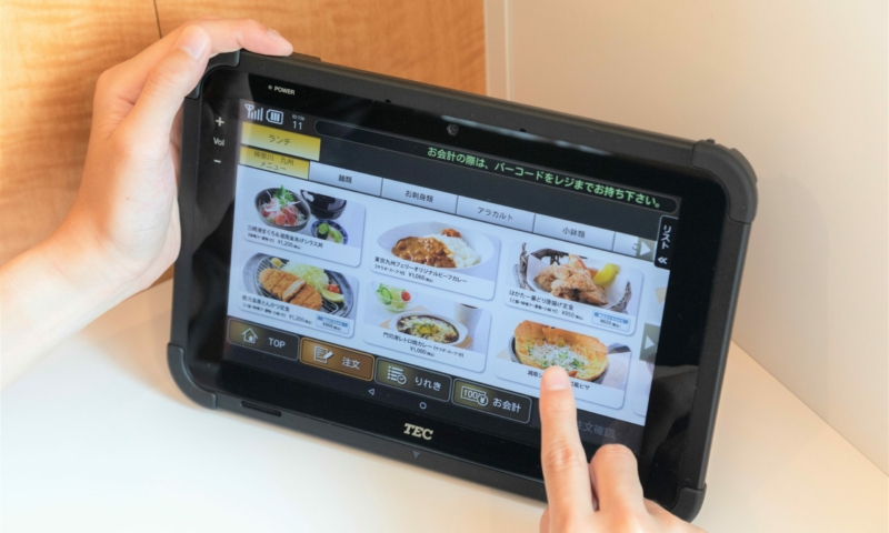 您可以通过设置在各张桌子上的平板电脑慢慢地选择菜单。